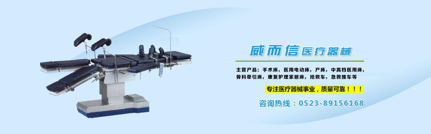 公司主要產(chǎn)品有:手術(shù)床,醫(yī)用電動床,產(chǎn)床,中高檔醫(yī)用床,骨科牽引床,康復護理家居床,搶救車,急救推車,醫(yī)用器械車,臺,藥品柜,護士站,陪護椅,輸液椅,中心供氧,負壓吸引,呼叫系統(tǒng)工程,護士站工程等產(chǎn)品。